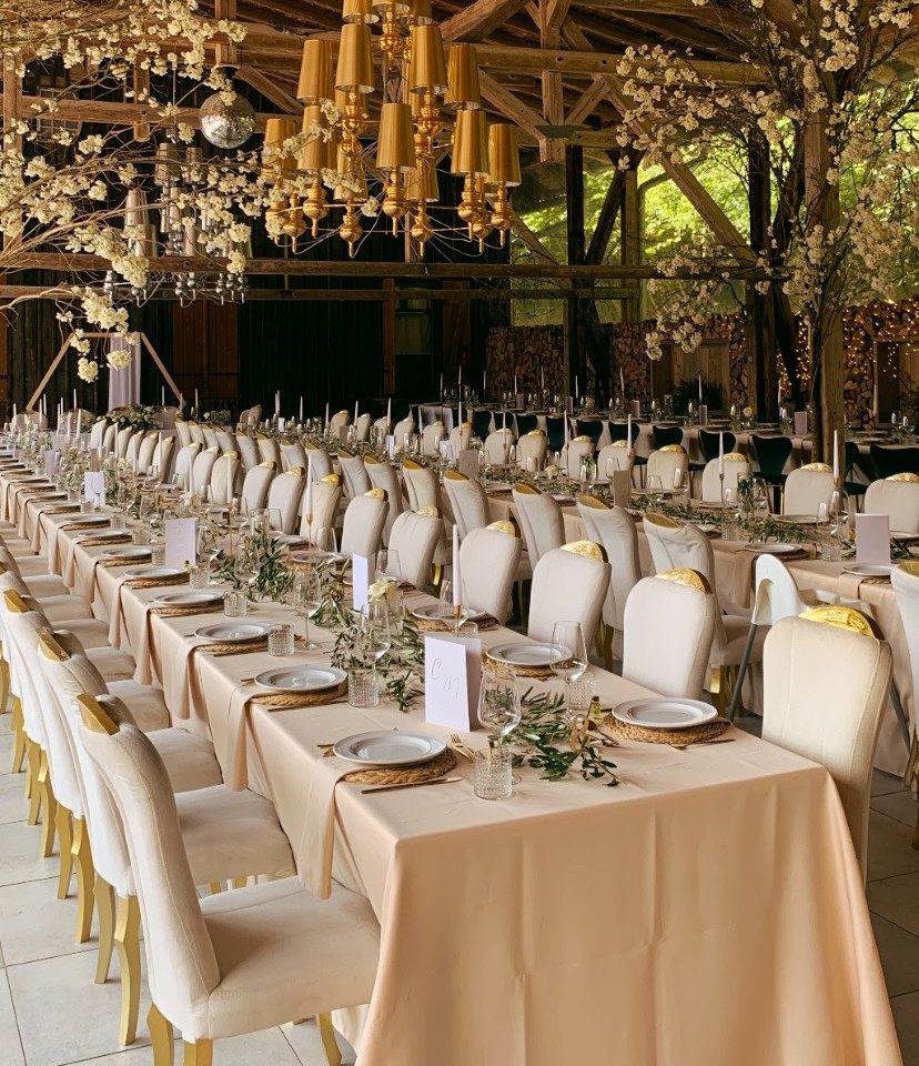 Jede Hochzeit ist individuell – ebenso unsere Gestaltung. Ob zarte Pastelltöne, goldene Akzente oder edle Blumenarrangements: Wir schaffen ein luxuriöses Gesamtbild, das Eure Persönlichkeit widerspiegelt und Eure Gäste verzaubert.